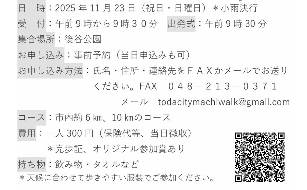 「戸田市まちウォーク2025」11月23日(祝日・日曜日)