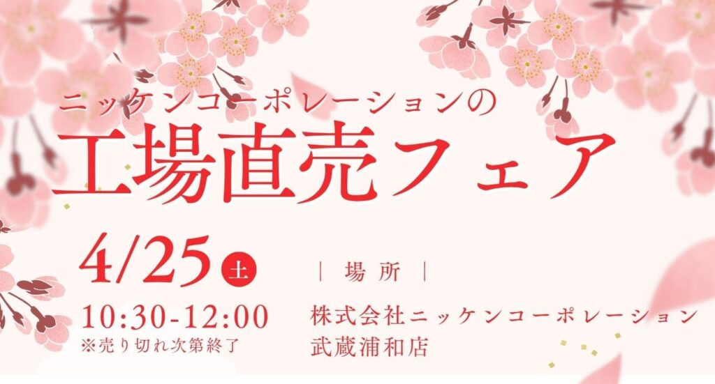 ニッケンコーポレーション 工場直売フェア 4月25日(土)